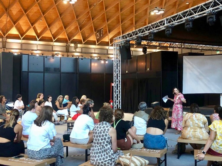 - Ascoltatori. Una maratona di lettura che dura 9 ore, evidentemente, non è fatta per essere ascoltata in toto, c’erano bambini che, dopo aver ascoltato due minuti, giocavano con la palla di Tempi, (dopo la fantastica manona, anche la palla?), oppure con gli adesivi di MammaOca che hanno appiccicato ovunque, super-minorenni con le mamme o con la nonna MammaOca, gente che passava per caso, e qualcuno si fermava, (ci siamo fatte mettere all’incrocio delle vie del Villaggio Ragazzi proprio per questo), c’era chi per riposarsi dalla faticaccia di tutto quel che c’è da fare e vedere al meeting sedeva su panche e sedie della maratona, e ragazze che dovevano Instagrammare il loro passaggio davanti a quel bellissimo sfondo di giardino. E c’era, incredibile, chi leggeva e seguiva leggendo.