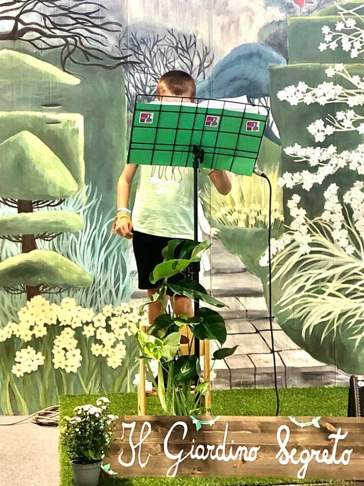Lunedì 21 agosto ho tenuto una lezione ai “grandi” sulla lettura Ad Alta Voce, che se avessero visto i bambini il giorno prima avrebbero capito sicuramente di più…, ho introdotto la Maratona di lettura del giorno dopo e il libro che sarebbe stato letto da 85 persone, Il giardino segreto. … e ovviamente, dato che per l’occasione mi avevano fornito di microfono ad archetto, ho potuto librare le braccia, come, mi dicono, faccio sempre, dimostrando di essere una tremenda e non attendibile conferenziera seria. 🙂 Non puoi parlare coi grandi come fossero bambini… 🙂