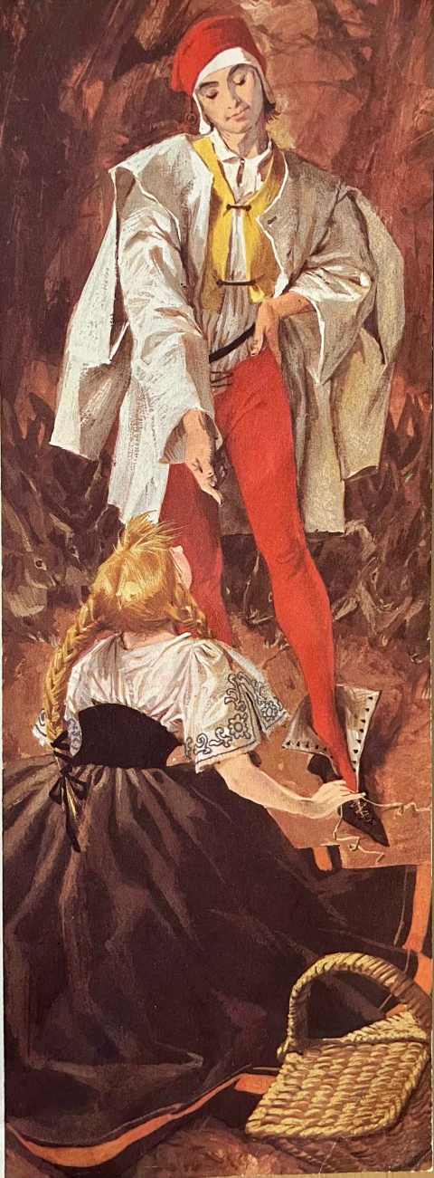 La principessa non aveva mai allacciato le scarpe a nessuno, nemmeno le proprie: ma pur di avere la lepre, si inginocchiò e allacciò la scarpa del pastore. Appena ebbe la bestiola, la mise in un cestino e si allontanò soddisfatta. Ma aveva fatto pochi passi che il pastore prese lo zufolo, vi soffiò dentro e subito la lepre schizzò fuori dal cestino e tornò in mezzo al branco.