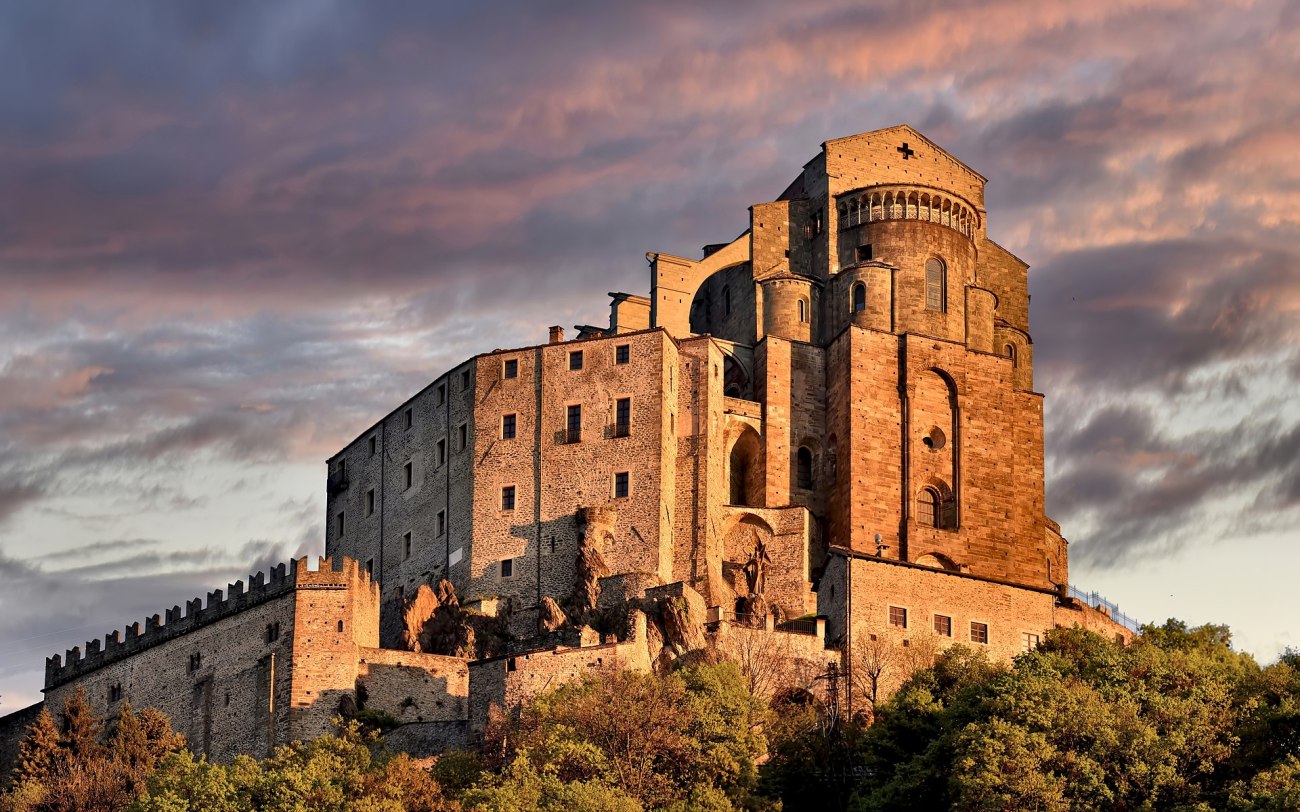Alpi Cozie monte Pirchiriano, quasi 1000 metri di altezza. La leggenda legata alle origini della Sacra di San Michele in val di Susa risale alla fine del X secolo e ha come protagonista Giovanni Vincenzo, uno dei tanti eremiti che a ridosso dell’anno mille cercarono pace tra queste montagne. Giovanni Vincenzo era stato vescovo di Ravenna, ma a un certo punto della sua vita aveva deciso di ritirarsi dal mondo. Per il suo eremitaggio aveva scelto il monte Caprasio. Lì gli apparve l’Arcangelo Michele che gli chiese di costruire in suo onore un luogo di accoglienza per i tanti pellegrini che attraversavano quei valichi diretti a Roma. Giovanni si mise subito all’opera e come logico cominciò col tagliare la legna necessaria alla costruzione della cappella. La accatastò per benino e andò a riposare. Il giorno successivo però la legna era scomparsa. Il religioso, pur stranito, ricominciò a tagliare e accatastare, poi si ritirò per la notte e di nuovo, al mattino successivo, non trovò più il frutto del suo lavoro. Lo stesso accade il terzo giorno. Giovanni a quel punto era certo di trovarsi di fronte a un prodigio divino e a confermare la sua intuizione, ecco apparire per la seconda volta Michele, per dirgli che era stato lui stesso a spostare la legna sul monte dirimpetto, il Pirchiriano, perché era là che desiderava sorgesse la sua cappella. Senza indugi, Giovanni si recò sul Pirchiriano, dove trovò la sua legna, ben accatastata e pronta per essere usata. All’operoso Giovanni ci volle un po’ di tempo per portare a termine il suo compito, alla fine, quando la cappella fu pronta, scese a valle a cercare il vescovo di Torino, perché consacrasse la chiesetta. I due si incamminarono verso il luogo sacro, seguiti da un gran numero di fedeli, ma una volta giunti in vista del Pirchiriano, si trovarono di fronte una scena inattesa: la cima della montagna appariva avvolta da fiamme vivide, perché gli angeli stessi stavano consacrando la chiesa e la loro luce angelica illuminava tutto dando vita a uno spettacolo stupefacente ad maiorem Dei gloriam.
