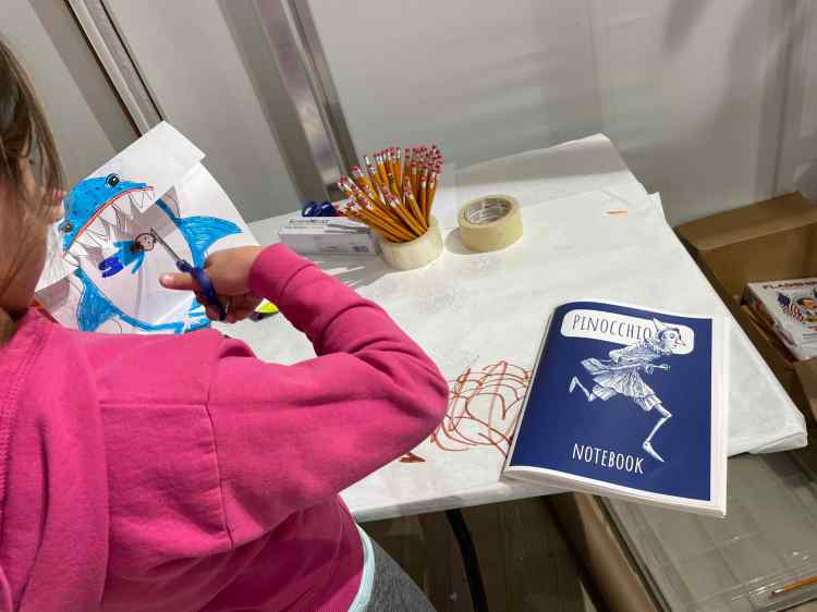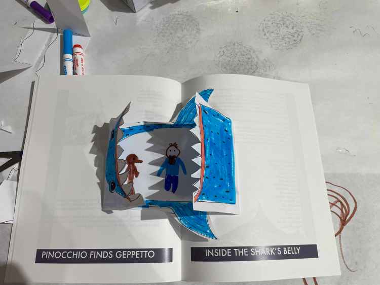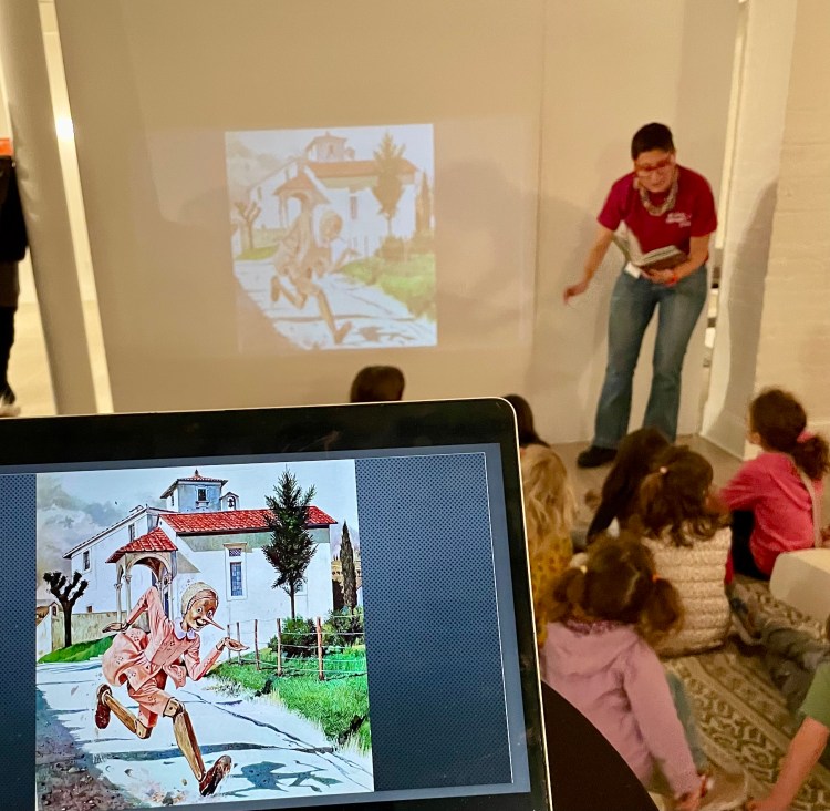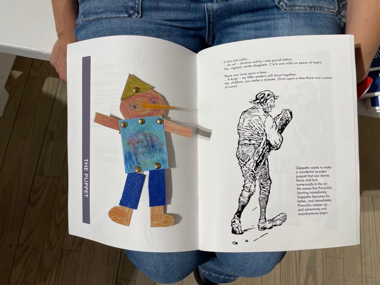 Questa proposta è nata a febbraio 2024 per la richiesta da parte di amici di New York di introdurre Pinocchio ai bambini americani, che conoscevano il burattino solo da Disney, ne parlo ampiamente qui e qui. Da quella prima esperienza, che mi ha confermato l’attrazione che Pinocchio suscita su tutti (anche sul cardinal O’Malley, che è passato da lì, “Pinocchio is a wonderful book ”), l’idea si è evoluta e da Pinocchio Notebook con lettura animata in inglese, e laboratorio, è diventata questa proposta. Ma il Pinocchio Notebook è sempre disponibile, ne parlo sotto.