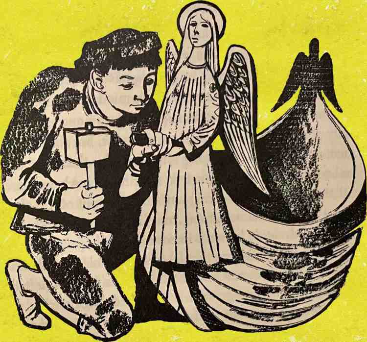 La culla restò così sotto il giaciglio di Bo-Bossu che non poté più occuparsene. Era quasi terminata, ma c’era ancora un angelo da scolpire e doveva essere ancora lucidata. Per cinque sere di seguito Bo-Bossu si gettò sul pagliericcio senza nemmeno aver inghiottito un boccone, ma la quinta sera fu assalito da una grande inquietudine: aveva fatto una promessa alla Madonna e la stanchezza gli avrebbe dunque impedito di mantenerla?
