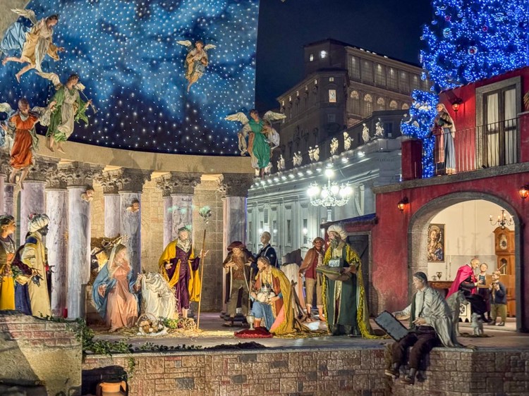 Il 15 dicembre 2025, in piazza san Pietro a Roma, è stato svelato il monumentale presepe che quest’anno mette, accanto alla sacra famiglia, Sant’Alfonso Maria de’ Liguori mentre, seduto al clavicembalo, pare suonare e cantare la sua canzone più nota Tu scendi dalle stelle, accompagnato dal coro dei bambini vicini. Scriveva i suoi canti in dialetto, sant’Alfonso, poi tradotti in italiano, parole semplici e esperienze reali per parlare dell’Incarnazione al popolo di cui era pastore, agli umili, ai bambini.